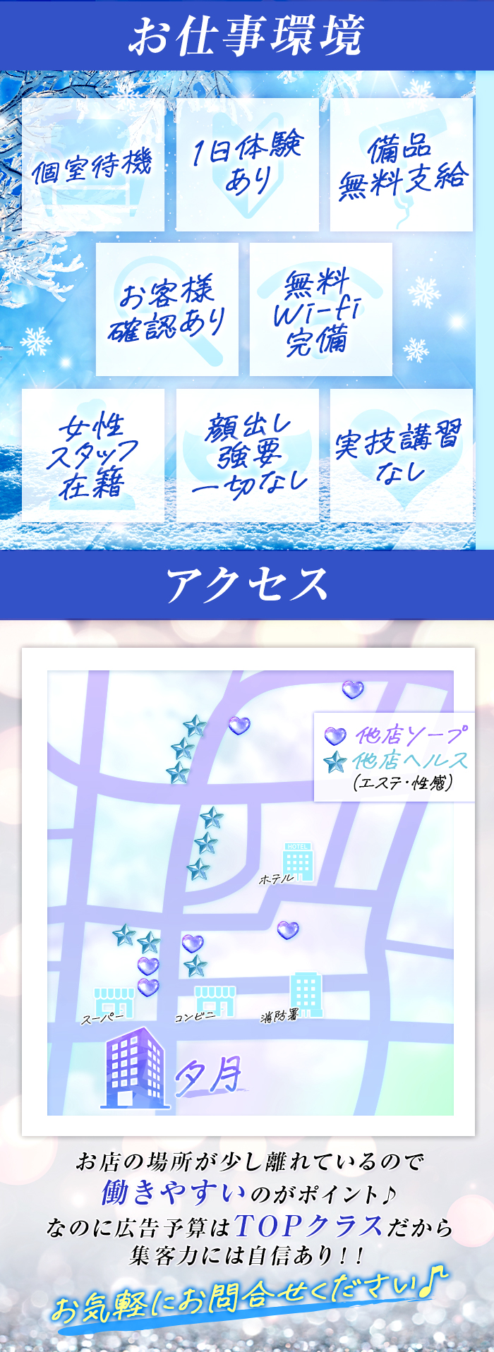 ※同地域での他の風俗店や、水商売とのかけもちの方はお断りしております。